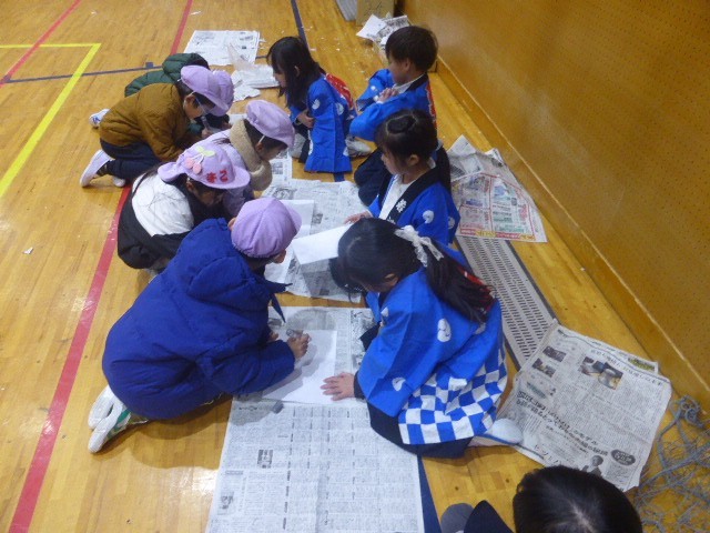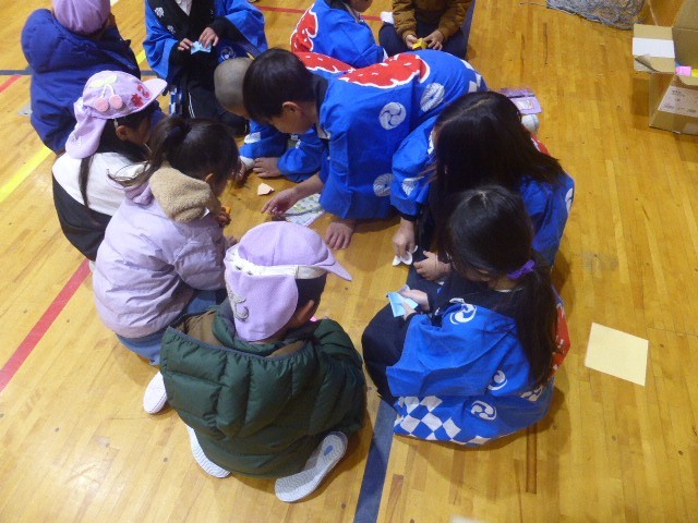 まつりでは、手作りの羽子板やお手玉、射的、新聞遊び、すごろく、折り紙遊びの6つのブースを用意しました。