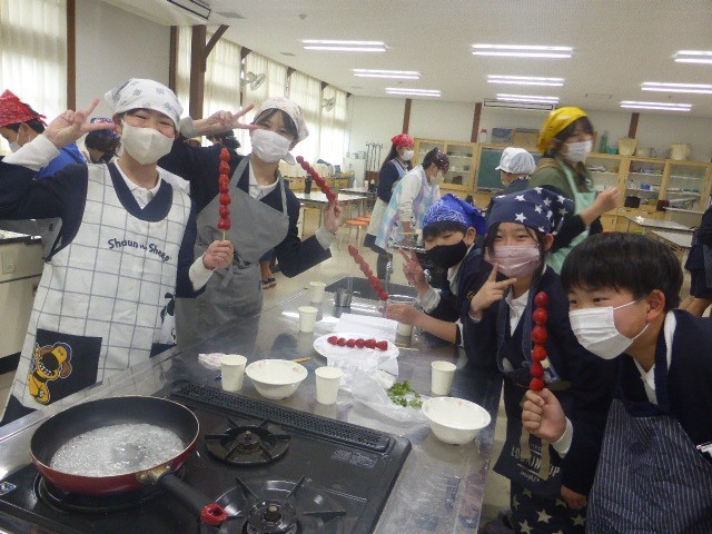 先日の5年生による節分祭の感謝をこめて、教育コミュニティーの皆さんや地域の方々をお招きし、「ありがとう祭」を開きました。みんなで力を合わせて、いちご飴づくりに挑戦!とってもおいしく仕上がった班もあれば、ちょっぴり焦げてしまった班もありましたが…それもまた良い思い出。