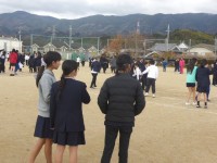 6年生は高野口中学校へ部活動体験に行ってきました。12月半ばですが、ポカポカとした陽気の中みんなで歩いて高野口中学校まで行きました。体育館で、応其小学校の6年生と一緒になり、校長先生や生徒会長さん各部長さんのお話を聞いた後、部活体験に出発です