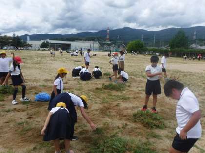 たて割り草引きの活動がありました。朝夕は少し涼しくなってきましたが、昼間はまだまだ暑さが続いています。そんな中でしたが、子どもたちは運動会に向けての草引きに意欲的に活動できていました。学年関係無しにみんなで一緒にする活動はとてもいいですね。