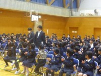 いつも登下校を見守ってくださっている見守り隊の皆様との対面式を、4年ぶりに開催しました。学校からは、4年生の音楽発表を聞いていただき、6年生が制作したお礼の品をお渡ししました。