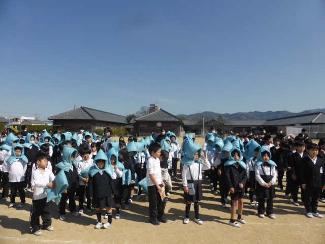 明日は東日本大震災が起こった日から14年目をむかえようとしています。本校においても掃除の時間に地震が起こったという設定で避難訓練を行いました。掃除中なので高学年は掃除場所からの避難となりました。どんな状況下で地震が起こるかわかりません。その場に応じた対応が取れることが大切になってきます。明日は、地震のことを真剣に考える一日にしてほしいですね。