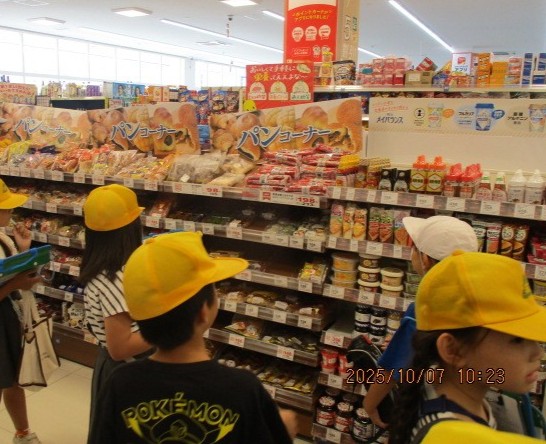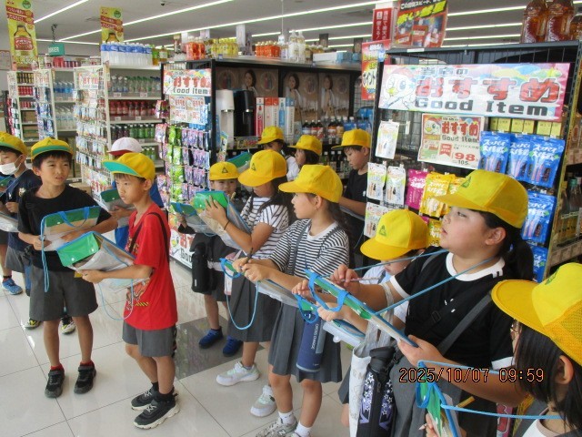 今日は2、3時間目にスーパーマーケットの見学に行きました。応其にお店を構えるマツゲン伏原店様とツルハドラッグ高野口店様にご協力いただき、店内やバックヤードなどを見学したり店員さんにインタビューしたりさせていただきました。普段は見ることができないところをたくさん見せていただき、子どもたちは興味津々に見学しました。ご協力いただいた店舗様、ありがとうございました。