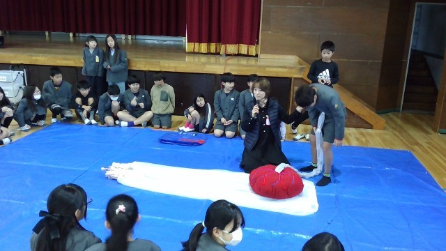 出産のときはお母さんも赤ちゃんもとても頑張っていることを学びました。赤ちゃんは自分の頭を小さくして、回転しながら一生懸命に動いています。子どもたちはその話を真剣に聞くことができていました。
