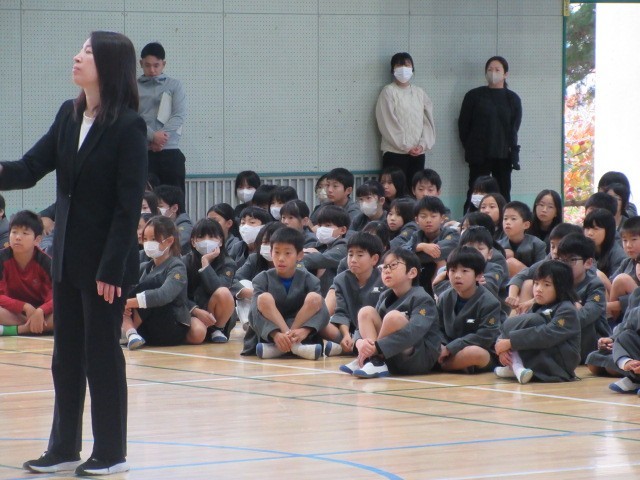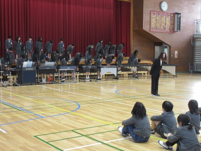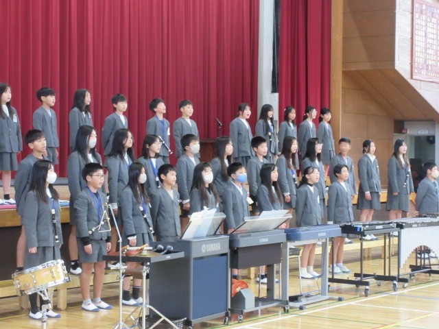 練習の成果を今日は、全校児童の前で披露しました。また、たくさんの保護者も見に来てくれました。