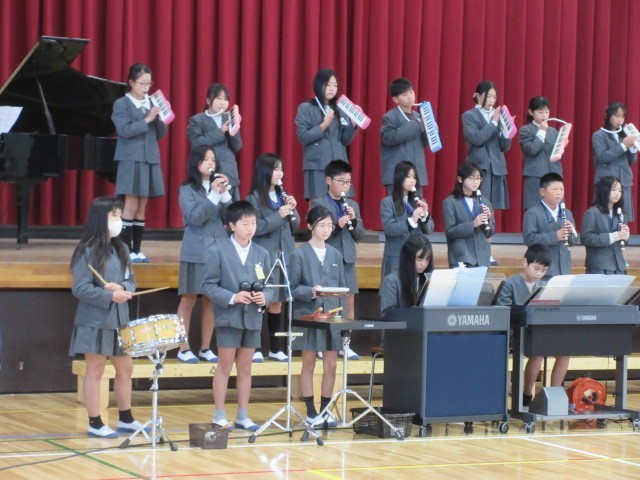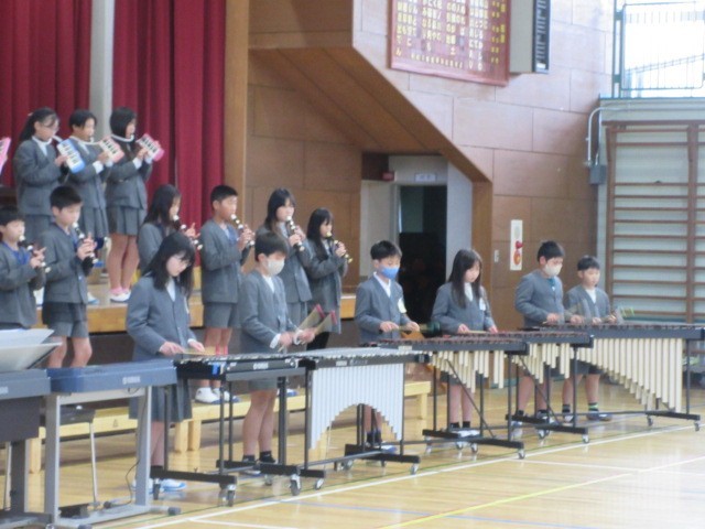 今日の集会は、5年生の音楽発表でした。5年生は、11月27日のはしっこ音楽祭に向け、授業中や休み時間を使って練習してきました。