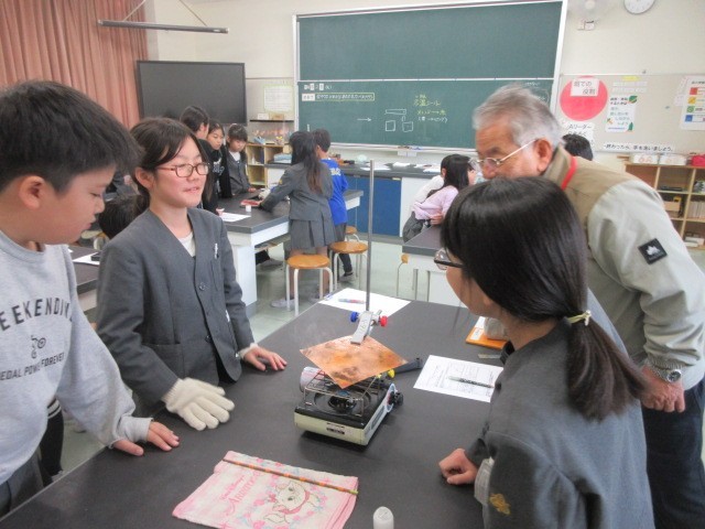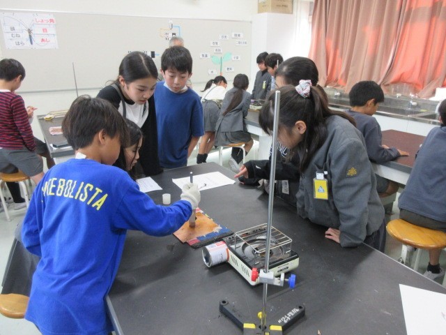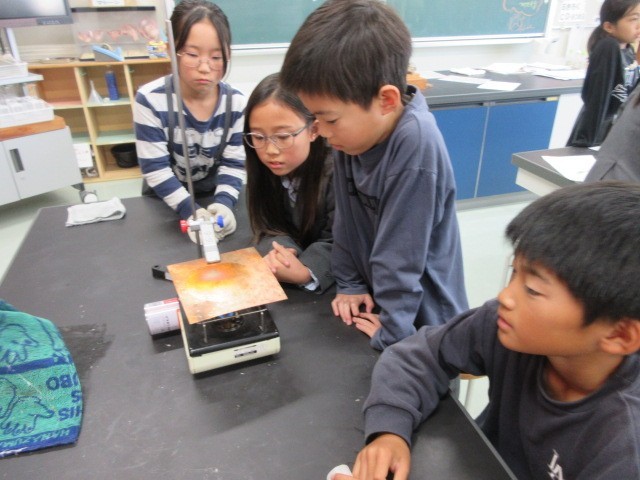 熱せら他部分から順に温かくなる様子を、キラキラした眼で観察していました。
