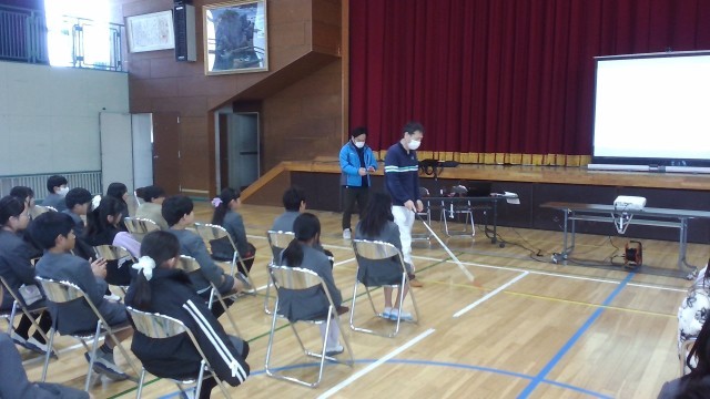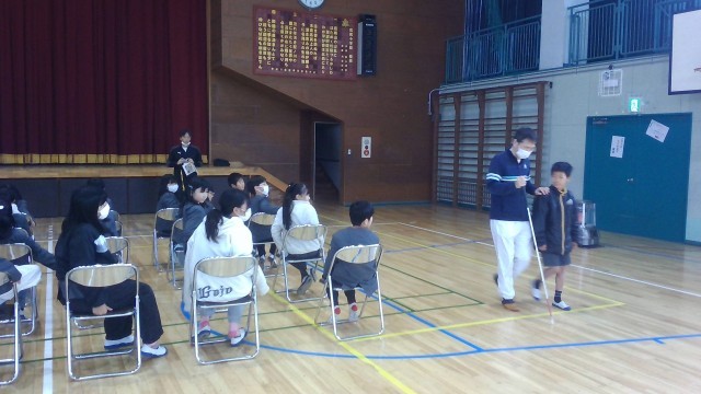 目が見えないから普段の生活で心がけていること、工夫していることを聞きました。また白状を使っている様子を見せてもらいました。自分たちは目が見えない人に対して何ができるかをよく考えることができる時間でした。
