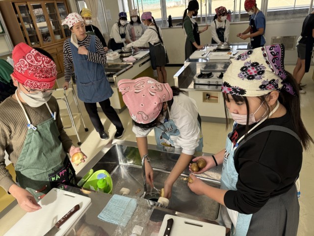 本日家庭科の授業で、ジャーマンポテトを作りました!『5大栄養素』を学ぶ良い機会となりましたね。実際に食べている時のみんなの笑顔がすごく素敵でした!