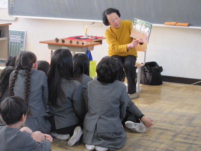 今日は、「おはなしのいす」さんが3年生に来てくださいました。