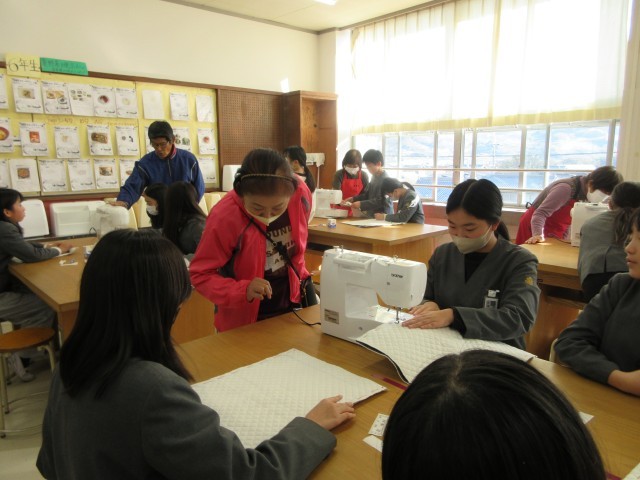 今日は家庭科の授業にミシンボランティアさんが来てくれました。5年生は初めてのミシンでしたが、丁寧に教えていただき上手に縫うことができました。どうもありがとうございました。