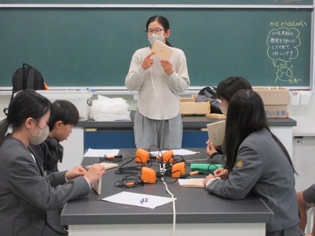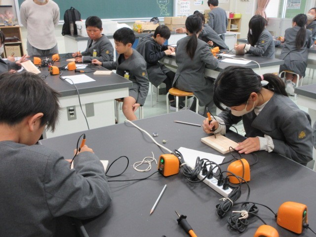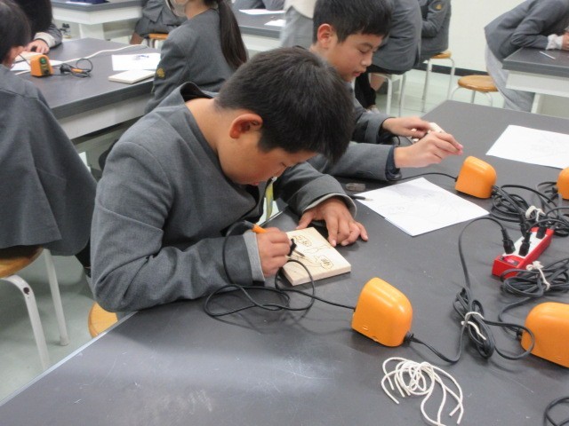 今日の2・3時間目に、高野山寺領組合の方が来てくださり、緑育最後の活動であるウッドバーニングの体験をさせてもらいました。