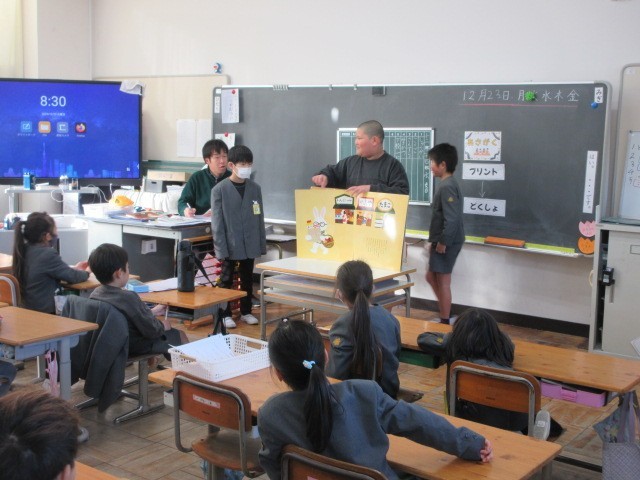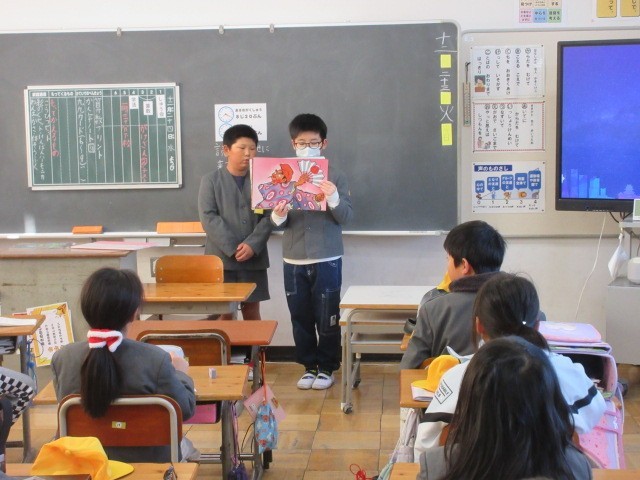 朝学の時間を使い、4年生以上の図書委員会さんが、本を読んでくれました。
