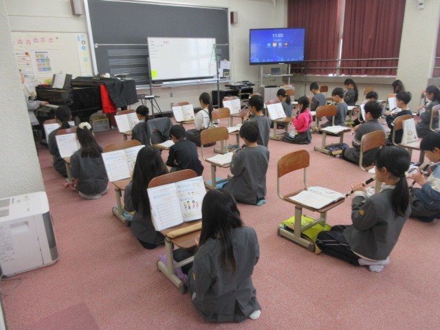 リコーダーの演奏をしています。落ち着いて学習に向かい、きれいな音色を響かせていました。