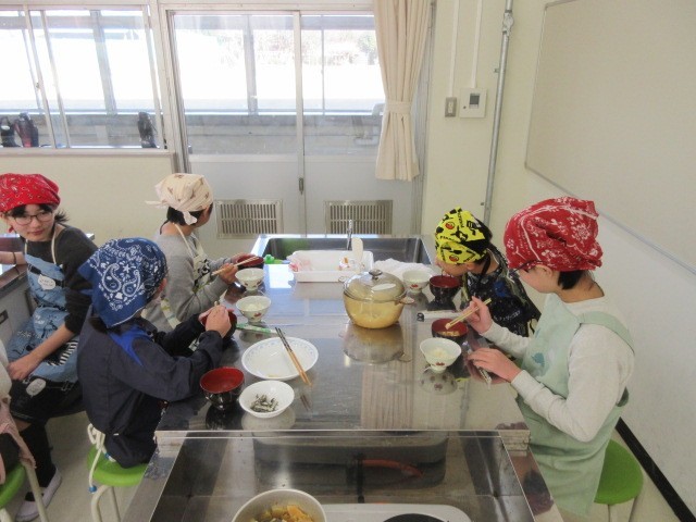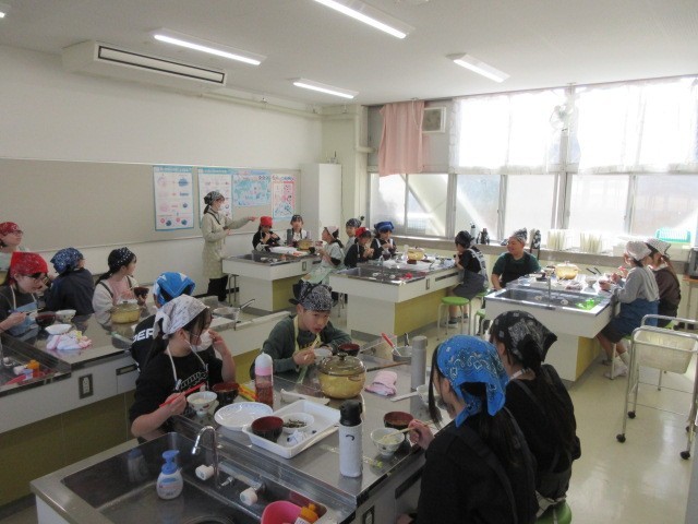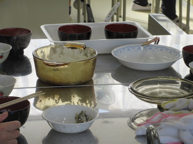 今日の1.2時間目に、家庭科の学習の時間で調理実習を行いました。調理実習では、味噌汁とご飯を作りました。炊飯器で炊いたご飯とは違った、おこげはどんな味なのかな?そんな風に話しながら食べている様子を見られました。