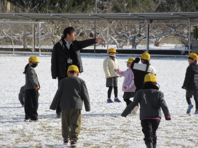 友達と楽しく雪あそびをしました。