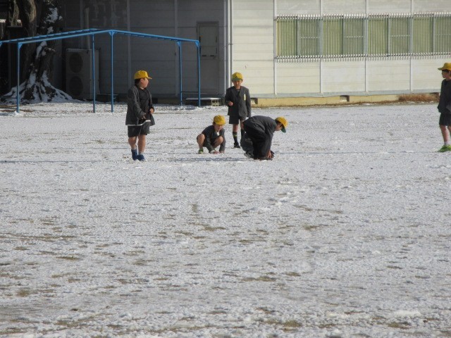 昨日降った雪が解けずに、応其小学校にたくさん残っていました。