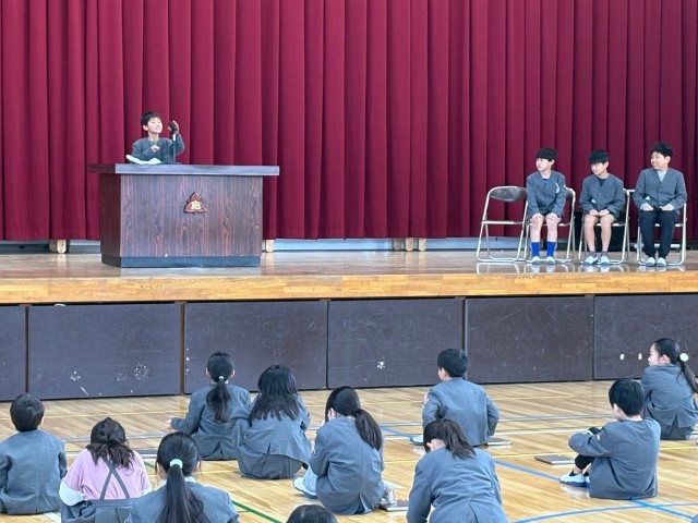 令和8年度の児童会選挙が行われました。新たな学校づくりのため、立候補した児童が一生懸命考えた目標を演説していました。演説内容は楽しい学校作りをどうしたらよいかが入っていました。楽しい学校にすることでみんなが明るくなれるようにしたいという思いをはっきりとした声で伝えていました。また、3年生が初めての児童会選挙への参加で戸惑いながらも4・5年生の話を聞いて学校のリーダーについて考えることができていました。今回も学校作りの為に全員が真剣に投票していました。