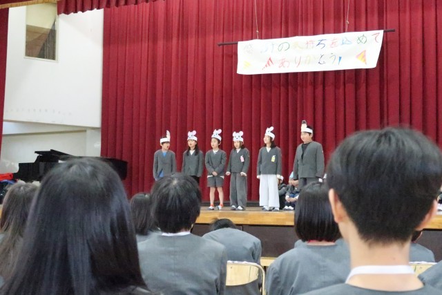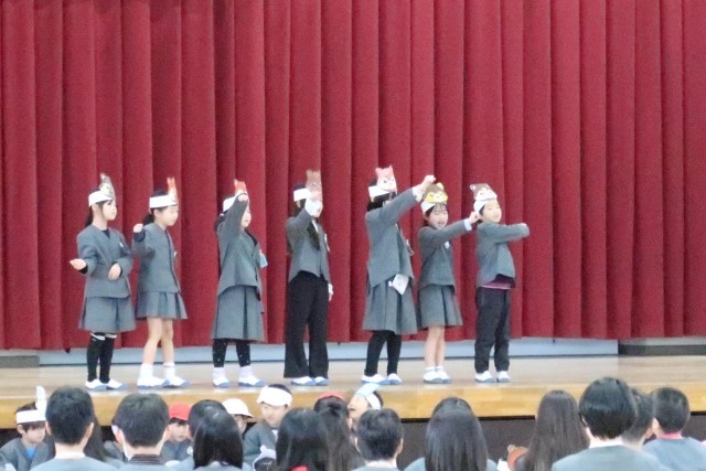 今日は、6年生に贈る会でした。授業参観が終わってから、今日まで一生懸命頑張って練習してきました。一人ずつ読むところ、みんなで声をそろえて読むところ、全部頑張って取り組むことができました。本番が終わると、「緊張した!!」とたくさんの子が言っていました。しかし、子どもたちの顔は達成感でいっぱいでした。そんな1年生の一生懸命さが伝わって、6年生がとても喜んでくれていました。