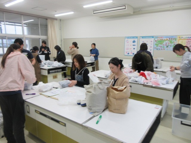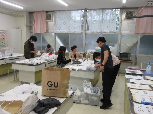 令和7年度のPTA人権広報部のみなさんが集まり、PTA総会後に行われる制服等リユースの仕分けをしてくださいました。
