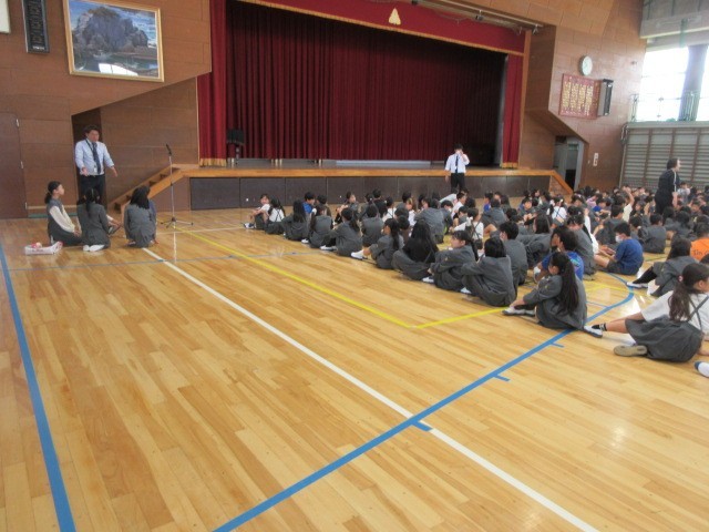 授業参観後、教室で学級懇談会をしている間、体育館で、児童会が主となってじゃんけん大会を行いました。