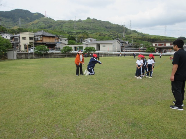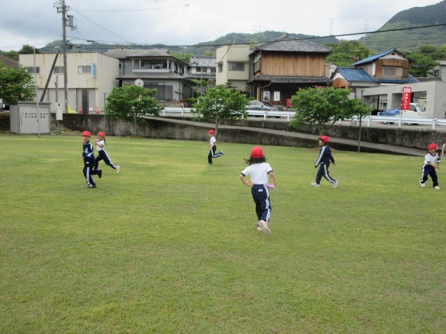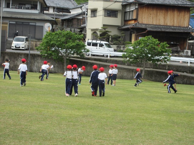 柿の郷九度山の芝生では、おにごっこやハンターごっこ、大繩とびをして楽しみました。