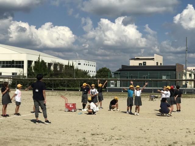 5年生に2週間、実習生が来てくれましたが、本日でお別れとなります。お別れイベントは、借り物競争。ランドセルを背負ったり、ぶどうの好きな人を探したりと、お題も自分たちで考えました。お別れは寂しいですが、楽しいひとときを過ごしていました。