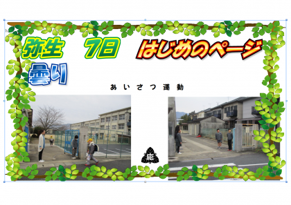 児童会 縦割りあいさつ運動 A7タコヤキ・B17ガリ×2君