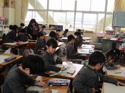 工作用紙(方眼紙)に四角をかいて、はこ作りをしています。