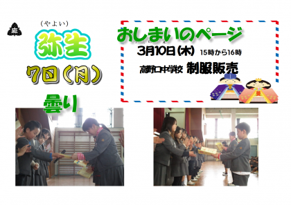 弥生 7日(月) 曇り おしまいのページ