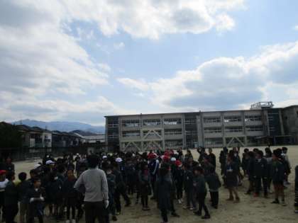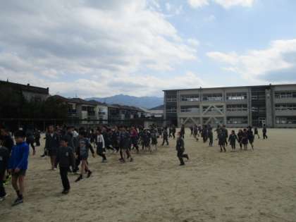 朝、先生たちから聞いた内容を守り、それぞれ自分が判断して集合できました。中には高学年が低学年の手を引いて、校舎から出てくる姿も多く見れてうれしく思いました。