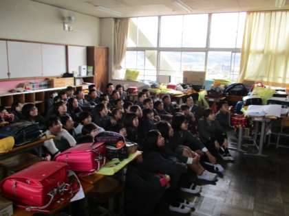 「担任が苦労して作成した6年生の思い出スライド」を全員で鑑賞しました。