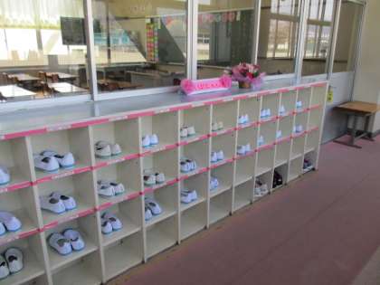 かわいいいくつが、きちんとそろいきれいにならんでいました。