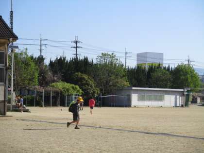4月20日(水) 晴れ 写真「7時45分頃の運動場」