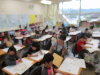 写真下 3B 図工 「むし歯」予防ポスターに取り組んでいます。 ピントが合っていないようです。ごめんなさい。