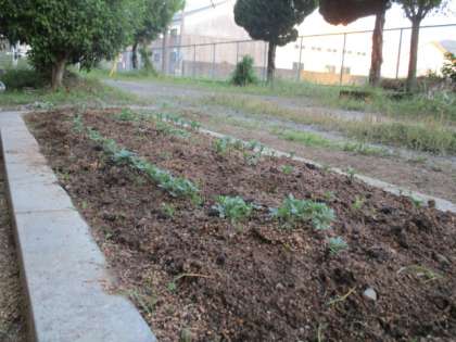写真上 4年生の花壇 キュウリ・ヘチマ