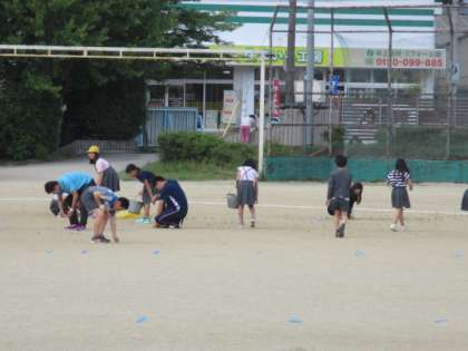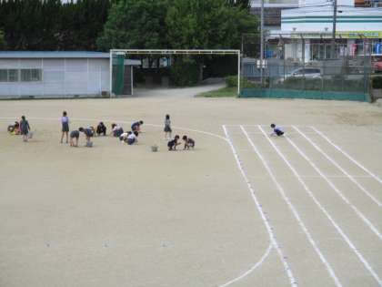 活動の反省・運動場の石拾い