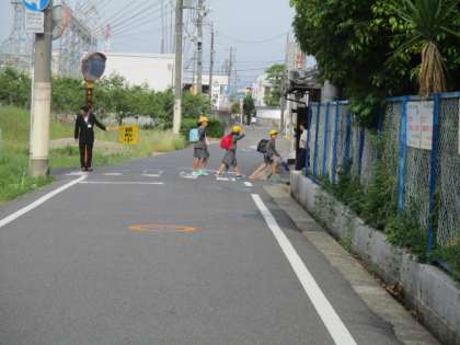 写真 教育実習生(谷口)も毎朝交通指導に出ています。