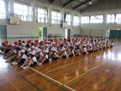 運動会練習 3限は、運動場。4限は、体育館です。暑さに負けず、がんばっています.