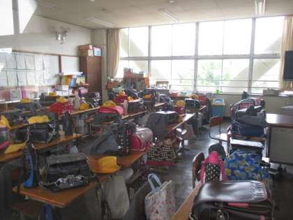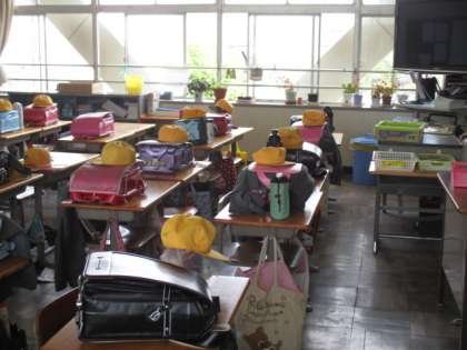 4年生がクラブ活動に行った後の教室です。きれいに机の上が整理されています。