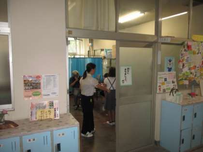写真 眼科検診の様子 運動会連取が終わって、眼科検診にきたところ・・・。