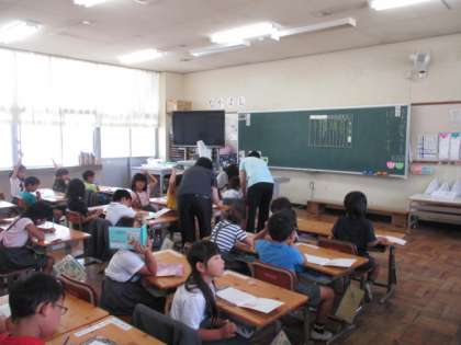 初めての連絡帳を書いています。明日の準備・文字の練習にもなる大事な連絡帳になります。これから毎日かきます。お家でも是非ごらんになってあげて下さい。