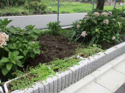 暑い中玄関の花壇の草引きをしてくれました。