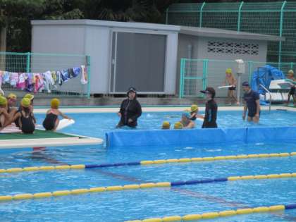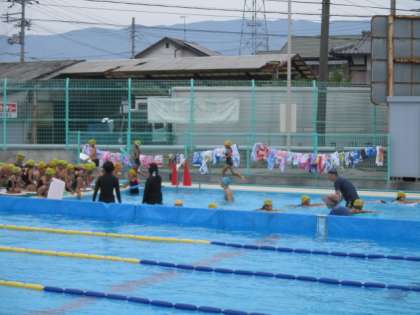 1・2・3年生に「水慣れ・伏し浮き・バタ足」等、水の楽しさも含め指導していただきました。