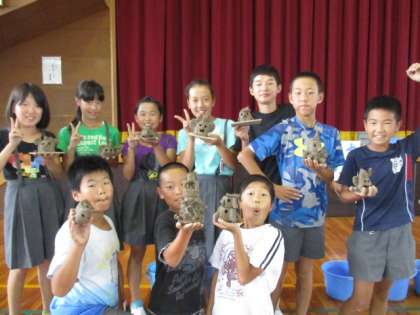 夢中になって、粘土で思い思いの埴輪を作りました。出来た作品は持って帰ってもらい、焼いていただきます。「出来上がりが楽しみです。」