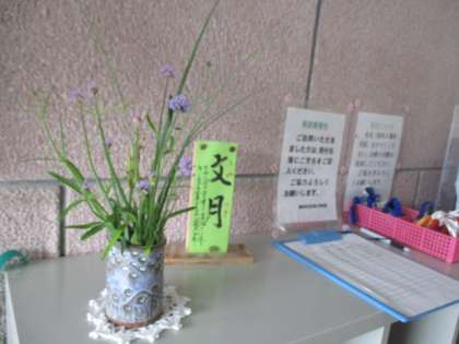 写真 縦割り遊びポスター・玄関の花