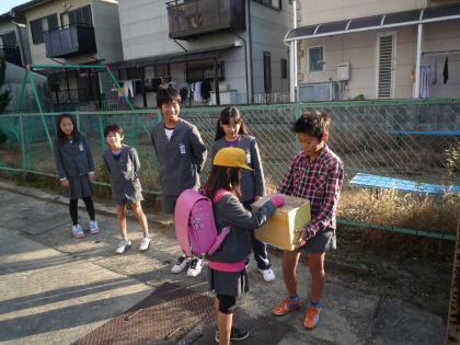 15日(火)より3日間、登校時に児童会役員による「赤い羽根共同募金」が行われます。登校する子に「おはようございます。 募金お願いします」と元気に声をかける児童会役員さん。それに笑顔で応えてサイフからお金を出して募金をする子。朝からさわやかな場面に出合うことができました。