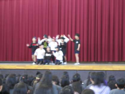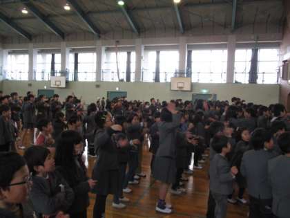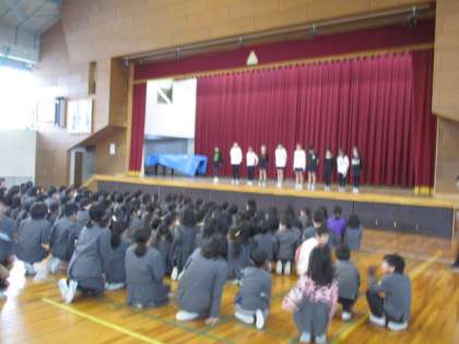 昼休憩に、練習の成果を体育館で発表しました。80パーセント(全校321名)ちかくの児童が応援に行っていました。