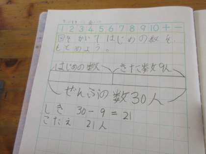 2年生(文月 14日 金曜日 ) 公開日 2017/07/14 更新日 2017/07/14 2年生 7月14日 金曜日 3限 2A・2B 算数 子どもがあつまっていました。9人来たので30人になりました。始め何人いたのでしょう? いいね(0)