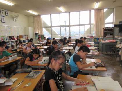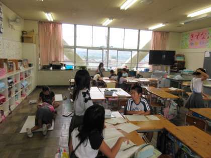 4年生 3限目の様子 (文月 14日 金曜日) 公開日 2017/07/14 更新日 2017/07/14 4年生 7月14日 金曜日 4A 国語 一つの花 場面の様子をくらべて・・・。 4B 国語 新聞作り いいね(0)